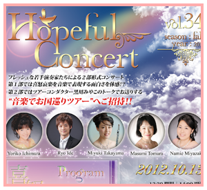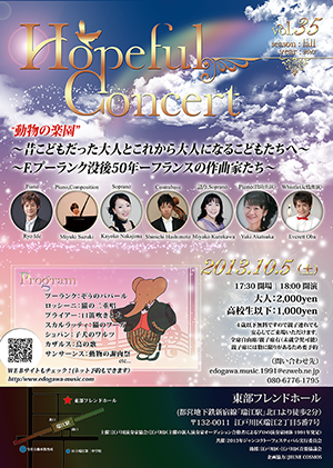 Yoriko Ichimura, Ryo Ide, Miyuki Takayama, Masumi Tomura, Namie Miyazaki Program ドビュッシー:喜びの島 ショパン:幻想即興曲 ロッシーニ:音楽の夜会より メンデルスゾーン:歌の翼に モーツァルト:フルートコンチェルト 「日本」の秋メドレー etc... ※10月6日以降に予約された方につきましては、代金支払いは当日受付にてお願い致します。